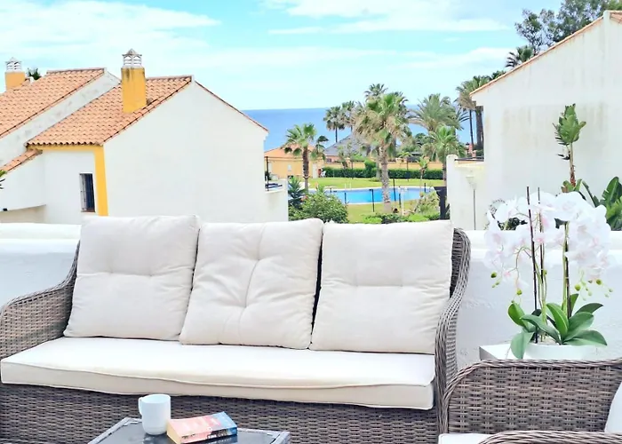 Esta villa frente a la playa se encuentra a una distancia de 7 km de los Baños de la Hedionda. Los huéspedes también pueden visitar el Puerto Deportivo De La Duquesa, situado a unos 25 minutos a pie.